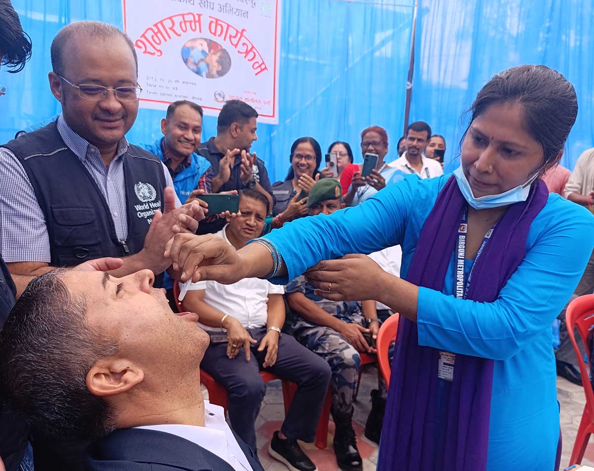 Chief of Child health and Immunization Service Section, Dr Abhiyan Gautam, requested to administer the anti-cholera medicine to all Parsa folks above one year as Parsa had saw cholera outbreak and it is still at high-risk of cholera due to inundation after the recent rainfall.