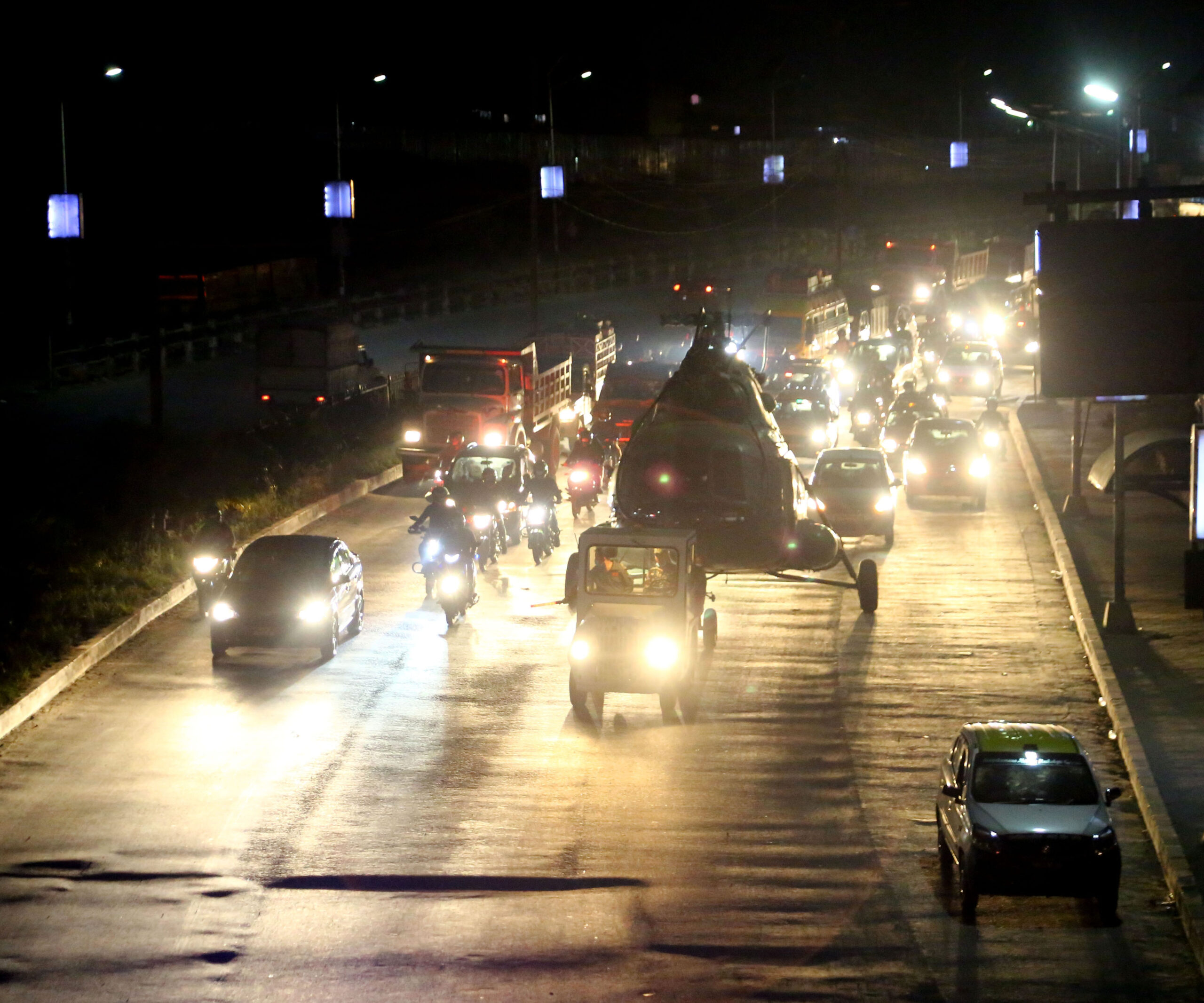 Kathmandu: A Nepal Army helicopter has been transferred from it’s wing of Tribhuvan International Airport to it’s Kharipati Army Barrack through land route on October 15, 2020. Photo: Roshan Sapkota/RSS