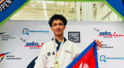 Kathmandu, May 4: Nepali taekwondo player Aadish Khadka won a gold medal today at the 2025 Gold Coast Open International