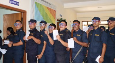 Kathmandu, Oct 9: Free eye checkups were conducted for security personnel on the occasion of World Vision Day. Nepal Netra