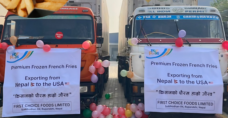 Kathmandu, Nov 5: For the first time, Nepal has exported premium frozen French fries worth Rs 5.488 million (USD 38,480) to the United States through the Bhairahawa Customs point. According to the Customs Office, Rupandehi-based First Choice Foods Pvt. Ltd. exported 43,520 kilograms of frozen French fries (two containers) to