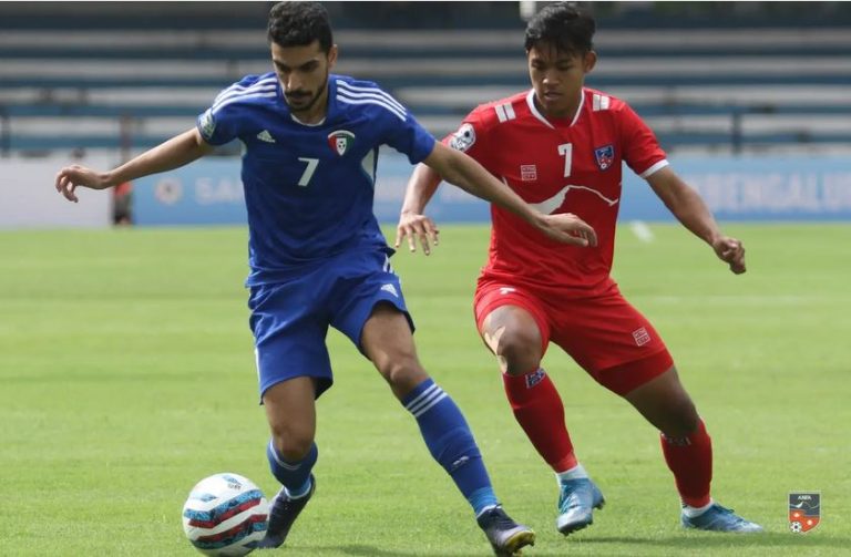 Kathmandu, June 21: Nepal has lost its first match of the 14th Men's SAFF Championship 2023. In the opening match held today at Kantirao Stadium in India, Nepal lost to Kuwait by 1-3 goals. Captain Khalid Hajih, Shabaib Alkhaldi and Mohammad Abdullah scored one goal each in Kuwait's victory. In