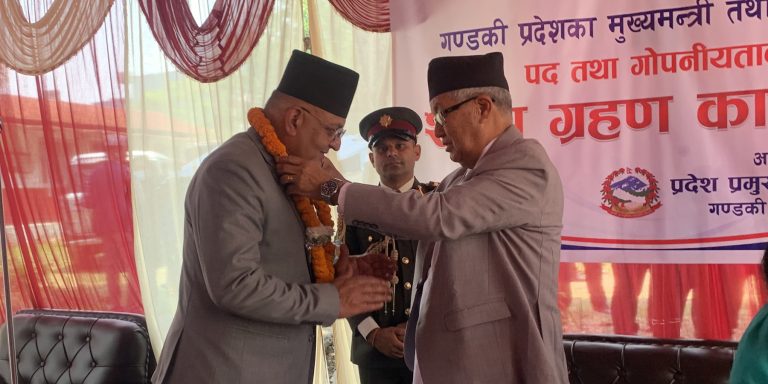 Pokhara, May 4: Chief Minister of the Gandaki Province, Surendra Raj Pandey has secured vote of confidence in the Gandaki province assembly. In today's meeting of the province assembly, he secured 35 votes in favour of his proposal seeking vote of confidence. He received support from 27 province assembly members