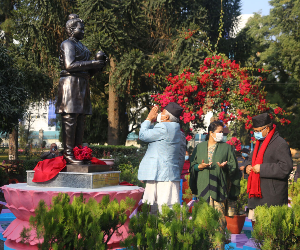 KATHMANDU, Nov 21: Statues of national icon Shankhadhar Shakhwa and one of the leaders of Nepal's democratic movement Padma Ratna Tuladhar have been unveiled at Ratna Park on Saturday. Minister for Urban Development Krishna Gopal Shrestha and Mayor of Kathmandu Metropolitan City Bidya Sundar Shakya jointly unveiled the statues of