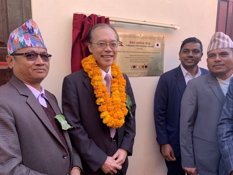 Kathmandu, Dec 19: The handover ceremony of the Project for the Construction of a Turmeric Processing Center in Pyuthan District supported by the Government of Japan to Pyuthan Municipality, Pyuthan District was held today. Mr. Kikuta Yutaka, Ambassador of Japan to Nepal, attended the ceremony. The project was implemented by