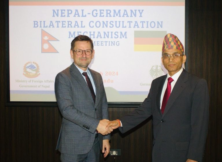 Kathmandu, March 21: The third meeting of Nepal-Germany Bilateral Consultation Mechanism was held here on Wednesday. Division Head (Joint Secretary) of the Europe America Division, Ministry of Foreign Affairs, Ganesh Prasad Dhakal, Director for Indo-Pacific Policy, South Asia, Afghanistan of the Federal Foreign Office of Germany, Erik Kurzweil, led their