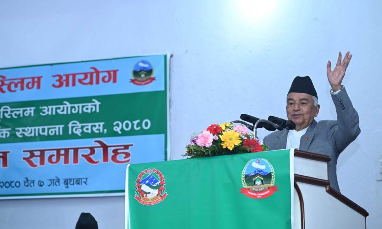Lalitpur, March 20: President Ramchandra Paudel has said religious harmony, tolerance and democratic and liberal characteristics of Nepali society are an example for the world. At a programme organised on the occasion of fifth establishment day of Muslim Commission in Lalitpur on Wednesday, President Paudel expressed the belief that the