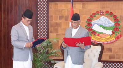 Newly appointed Minister of State for Energy, Water Resources and Irrigation Kham Bahadur Garbuja has taken the oath of office