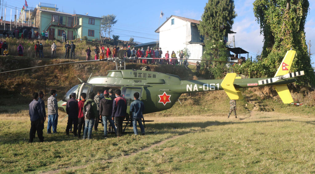 Humla, April 30: A 16 -year-old girl was rescued by a helicopter from Thehe of Simkot rural municipality-2 in Humla for labour complications. Though she was due after one and half months, her labour pain had begun on Sunday. The pain continues and she was diagnoised with hyper tension upon