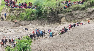 Balewa (Baglung), Aug 6: The death toll from separate landslides today in Baglung has reached seven while four have been rescued alive. Two were killed when the landslide buried a house at Badigad rural municipality-9 this morning and the landslide at Badigad rural municipality-10 resulted in the deaths of five,