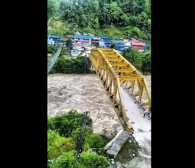 Taplejung July 23: The bailey bridge over the Simbuwa river connecting Faktanglung Rural Municipality-5 and 6 at Rani Pul has been washed away.
