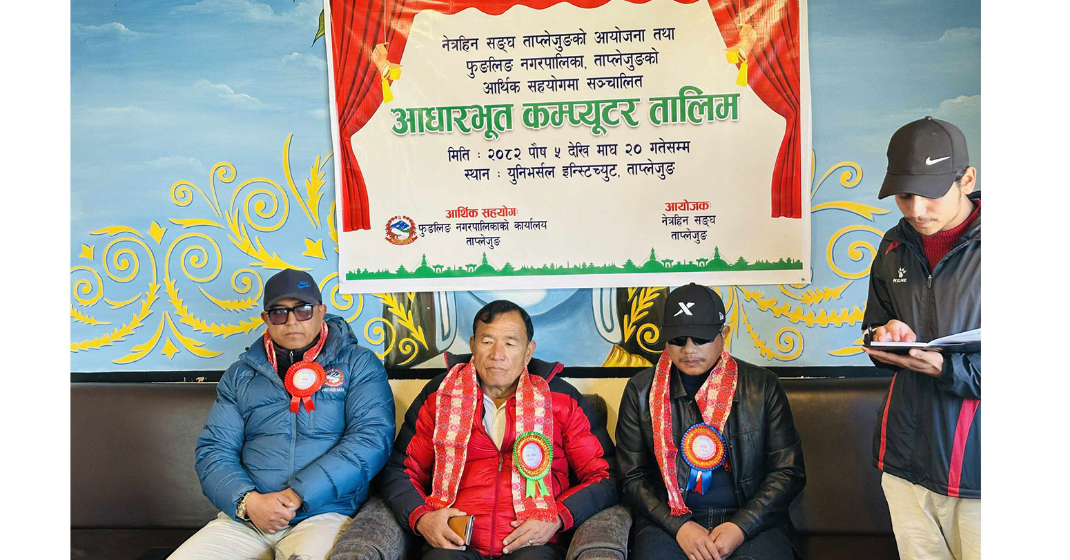 Taplejung, Dec 22: The Nepal Netra Jyoti Sangh (NNJS) Taplejung chapter has run basic computer training to the blind people aiming to make the blind people skilled in computer handling.