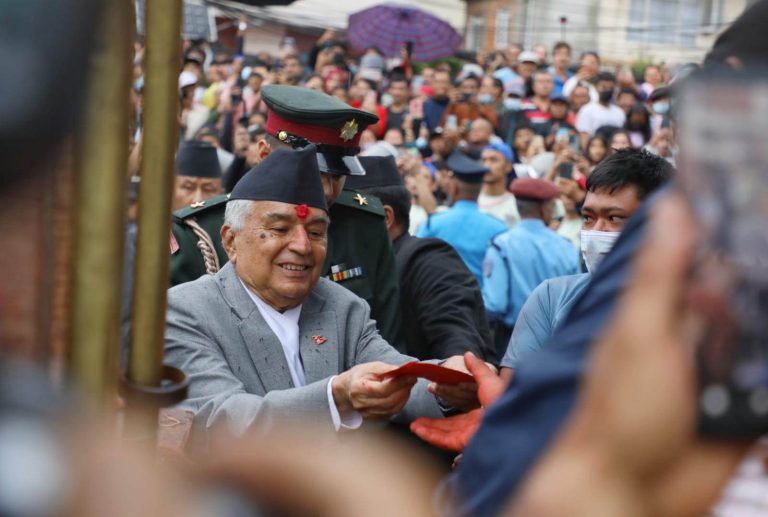 Lalitpur, May 25: President Ramchandra Paudel today observed the Bhotojatra festival, a ritualistic festival dedicated to the Rato Machchhindranath, the deity of rain and bountiful harvest. The President attended the Bhotojatra festival at Jawalakhel this afternoon and observed the ritual of displaying the Bhoto (the jewel-studded mythical vest believed to