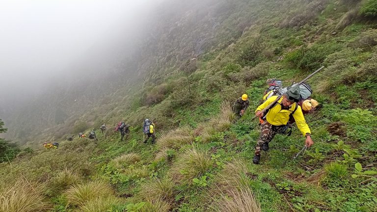 The Nepal Army has carried out one of the most difficult rescue works in Mustang's Thasang, where Tara Air's twin otter crashed. All 23 people aboard have died. (Photo: Nepal Army)