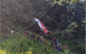 PALPA: At least seven people have been killed when a bus skidded off the road and fell approximately 60 metres