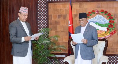 Kathmandu, July 9: Newly appointed Vice-chancellor of the Tribhuvan University, Prof Dr Deepak Aryal, took oath of office and secrecy
