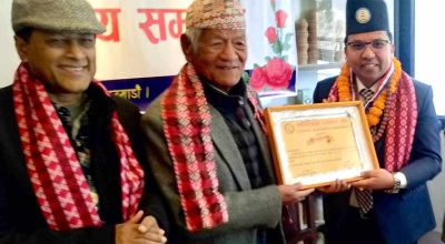 Tanahun, March 23: The Kshetra Pratap Memorial Literary Award, instituted by the Geetal Foundation Nepal and Drama Forum Tanahun, has been presented to literary writer and journalist Dr Nawaraj Lamsal. The award was handed over to Dr Lamsal amidst a programme organized at a meeting hall of Rishing rural municipality