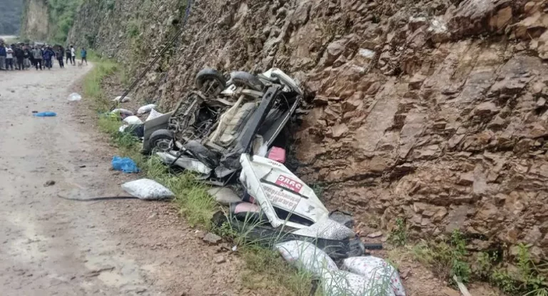 Kathmandu, July 28: Two persons died in a road accident occurred at Himchuli of Chandragiri Municipality-4 in Kathmandu today. The deceased have been identified as Nabaraj Thokar, 20, of Sindhuli and Anil Tamang, 46, of Kavre, said Deputy Superintendent of Police, Narayan Adhikari. The accident took place when a van