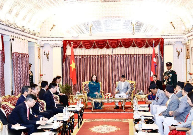 Kathmandu, Aug 25: Visiting Vice-President of Vietnam, Vo Thi Anh Xuan, paid a courtesy call on President Ramchandra Paudel today. During the meeting held at Sheetal Niwas, President Paudel said there is huge potential to strengthen economic relations through trade, tourism, investment and technology transfer between Nepal and Vietnam. "The