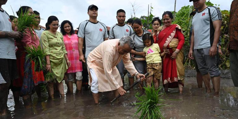 Kathmandu, June 29: A rice planting ceremony has been organised at the President's House, Shital Niwas, to commemorate the National Paddy Day on Sunday. President Ramchandra Paudel and First Lady Sabita Paudel also participated in the paddy transplantation ceremony. Inaugurating the rice planting on the occasion, the Head of State