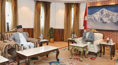 A meeting was held between President Ram Chandra Paudel and CPN UML Chairman KP Sharma Oli today at the President's
