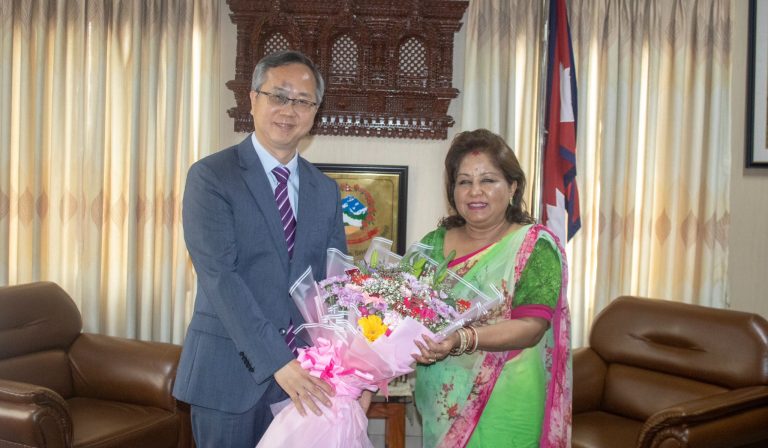 Kathmandu, July 17: Ambassador of the People's Republic of China to Nepal, Chen Song, paid a courtesy call on Minister for Foreign Affairs, Dr Arzu Rana Deuba at her office in Singha Durbar today. Various matters relating to Nepal-China relations and mutual interest and concern were discussed on the occasion,