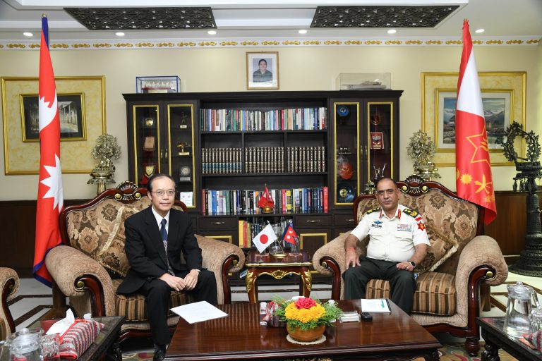 KATHMANDU: Ambassador of Japan to Nepal Kikuta Yutaka on Wednesday paid a courtesy call on Chief of the Army Staff Prabhu Ram Sharma at the headquarters of the Nepal Army. The meeting between the duo focused on the bilateral welfare and mutual relations between Nepal and Japan, according to the
