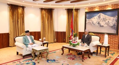 Prime Minister KP Sharma Oli called on President Ramchandra Paudel at the Rastrapati Bhawan, Shital Niwas, this morning