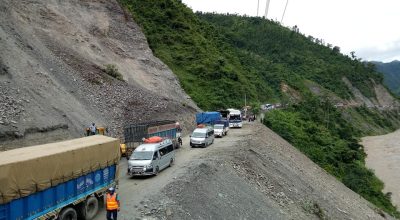 The Baglung-Burtibang road section along the Mid Hill Highway has been blocked after landslide occurred in Badigad rural municipality-2, Kharbang.