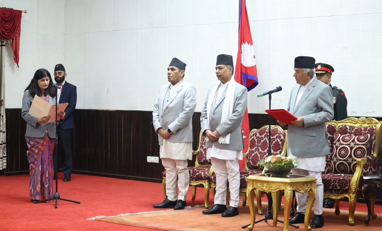 Kathmandu, July 16: Newly appointed Minister for Federal Affairs and General Administration, Bhagawati Neupane, took oath of office and secrecy before President Ramchandra Paudel. The oath taking ceremony was held on Wednesday at the Office of the President, Shital Niwas. The Head-of-the-State had, on the recommendation of Prime Minister KP