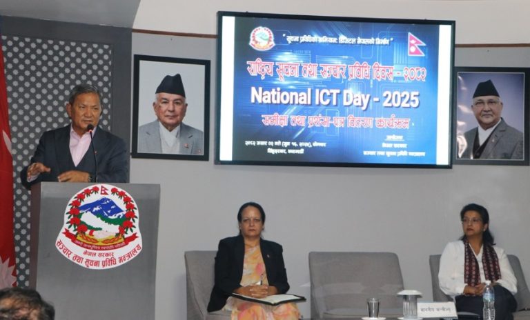 Kathmandu, June 16: Minister for Communications and Information Technology Prithvi Subba Gurung has said that collaboration between all three levels of government is necessary for the development of the information technology sector. At a program held to review the National Information and Communication Technology Day-2082 at the ministry today, Minister
