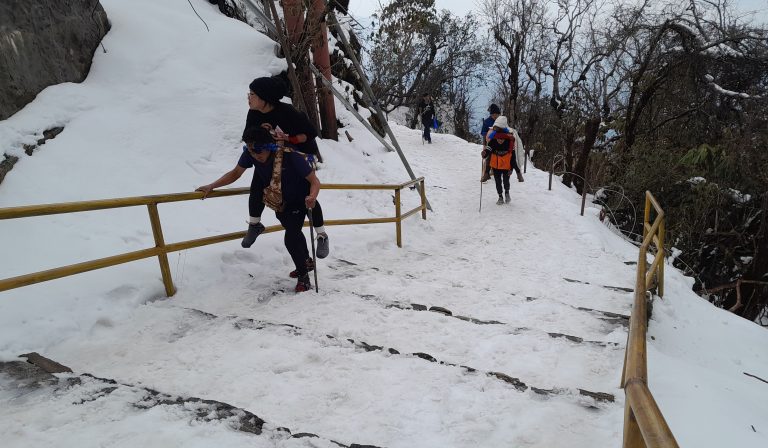 Taplejung, March 4: A two-kilometer trekking route has been constructed to reach the famous Pathibhara Temple through Mayam in Fungling Municipality-10. The trekking route has been constructed by using stone slabs from Chuchche Dhunga to Dhahelo in Mayam. The construction work was made possible with financial investment of Pathibhara Area