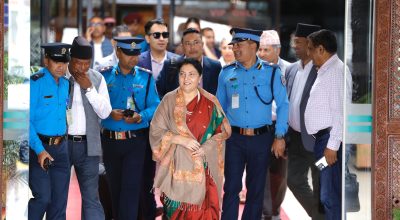 Former President Bidya Devi Bhandari returned home today following her 10-day visit to the People's Republic of China.