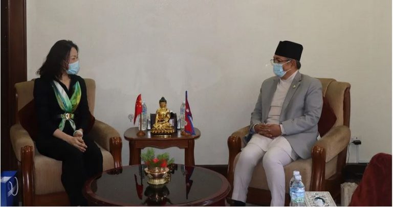 KATHMANDU: Chinese Ambassador to Nepal, Hou Yanqi, paid a courtesy call on Home Minister Balkrishna Khand on Friday. Discussion was held on strengthening bilateral relations, according to Home Minister's secretariat. "Nepal is always for One China Policy," Minister Khand made it clear, adding, "We are committed to not allow any
