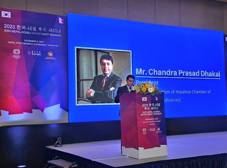 Kathmandu, Nov 8: President of the Federation of Nepalese Chambers of Commerce and Industry (FNCCI), Chandra Prasad Dhakal, has stressed on the need to promote partnership on bilateral investment between Nepal and South Korea to address a growing trade imbalance between the two nations. In his address to the Nepal-Korea
