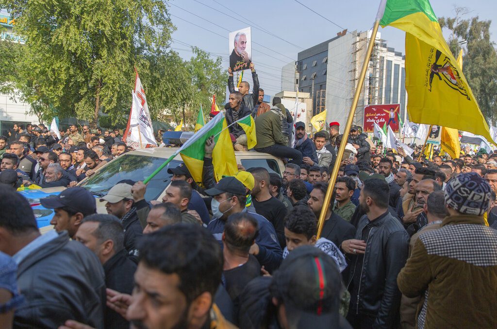 BAGHDAD (AP) — Thousands of mourners chanting “America is the Great Satan” marched in a funeral procession Saturday through Baghdad for Iran's top general and Iraqi militant leaders, who were killed in a U.S. airstrike. Gen. Qassem Soleimani, the head of Iran's elite Quds force and mastermind of its regional