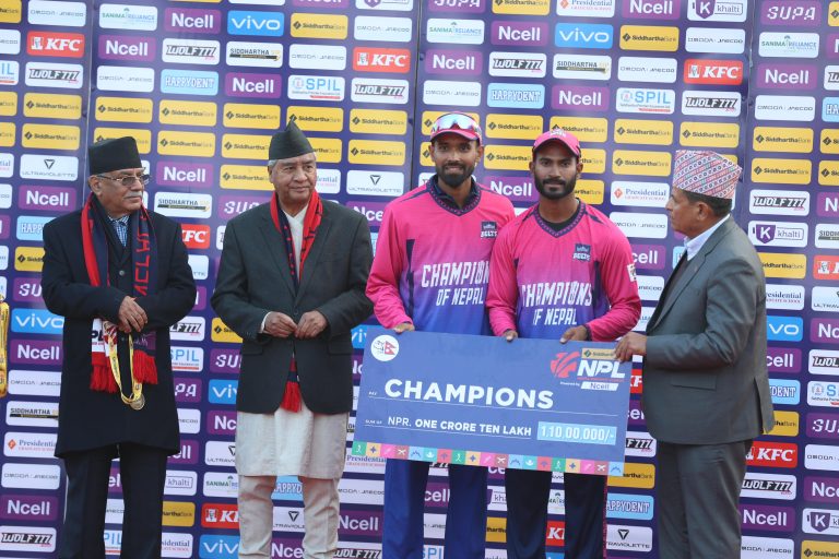 Kathmandu, Dec 21: The winning team of the first season of Nepal Premier League (NPL), Janakpur Bolts, has received Rs 11 million in cash and trophy. Janakpur Bolts has clinched the title of the first season of NPL T20 Cricket Tournament defeating Sudurpaschim Royals by five wickets. In the prize