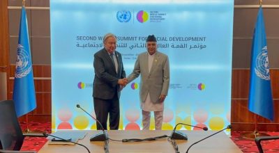 Kathmandu, Nov 4: Secretary-General of the United Nations, Antonio Guterres has paid a courtesy call on President Ramchandra Paudel, who