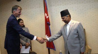 Kathmandu, Nov 3: German Ambassador to Nepal Udo Eugen Volz on Monday paid a courtesy call on Acting President Ramsahay