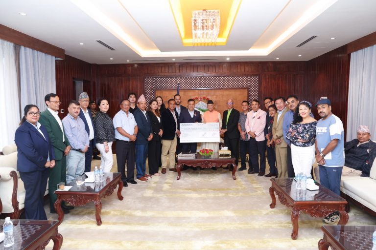 Kathmandu, Oct 9: The Non-Resident Nepali Association (NRNA) International Coordination Council has handed over a cheque of Rs 5.1 million to Prime Minister KP Sharma Oli to be deposited in the Prime Minister Disaster Relief Fund. A deputation of the NRNA including its president Dr Badri KC handed the amount