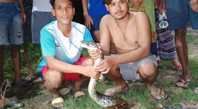 Chairman of a community forest, Pabiram Tharu, informed that the python rescued from sugarcane field on Monday evening was released