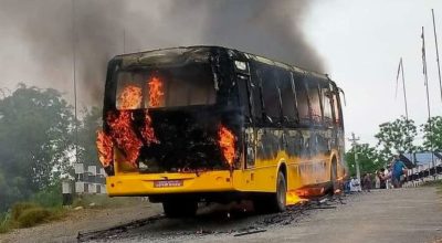 A bus that was on its way to collect school children came under petrol bomb attack on the Dadrahani Bridge
