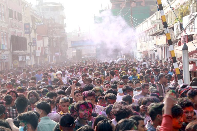 Kathmandu, March 24: Holi, the festival of good will and harmony, is being celebrated today in the hilly parts of the country. The festival is being celebrated in the Tarai tomorrow. During the festival relatives and friends gather and playing with colors and water. Also called Phagu Poornima, during this