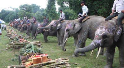 On the occasion of the 14th International Elephant Day–2025, elephants were treated to their favorite delicacies on Tuesday in Sauraha,