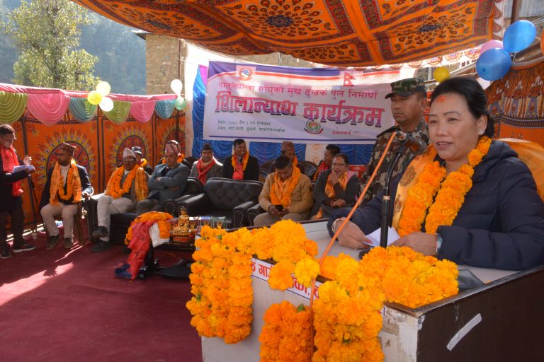 Banepa, Dec 22: Minister for Urban Development Sita Gurung laid the foundation stone for Patne Khola bridge and Patne Khola-Naya Basti-Durlung Khola road here today. The road will connect Bethanchok rural municipality in the district via Khopasi-Dhungakharka-Chamrangbesi-Phaparbari. Minister Gurung said that the road would be developed as an alternative auxiliary
