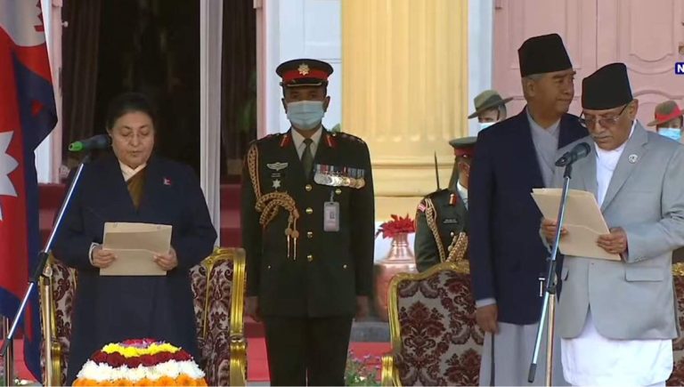 Kathmandu: President Bidya Devi Bhandari has administered the oath of office and secrecy to newly-appointed Prime Minister Pushpa Kamal Dahal 'Prachanda at a special ceremony held today at the Office of the President, Sheetal Niwas. With this, the CPN (Maoist Centre) Chair Dahal took oath as the 44th Prime Minister