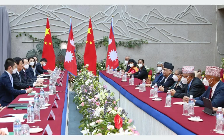 CPN (UML) Chair KP Sharma Oli and the visiting Chairperson of the Standing Committee of the National People's Congress of the People's Republic of China, Li Zhanshu, have held talks. The two leaders held a courtesy meeting at the Federal Parliament Building, New Baneshwor, this morning, the UML party office