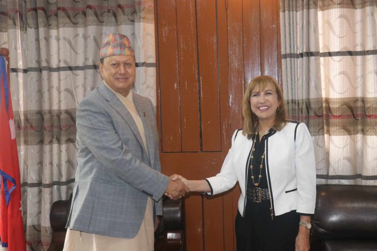 Kathmandu, Aug 14: United Nations (UN) resident coordinator in Nepal, Hanaa Singer- Hamdy, today paid a courtesy call on Minister for Health and Population, Mohan Bahadur Basnet. During the meeting, the two discussed about the matters regarding the coordination and cooperation between the government and UN bodies in Nepal's health