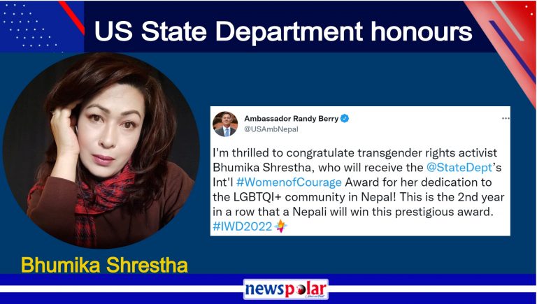 KATHMANDU: The US State Department has decided to honour Nepal's Bhumika Shrestha, including 10 other women around the world, who have demonstrated exceptional courage, strength, and leadership in order to bring about positive change to their communities, often at great personal risk and sacrifice. The Department has announced the name