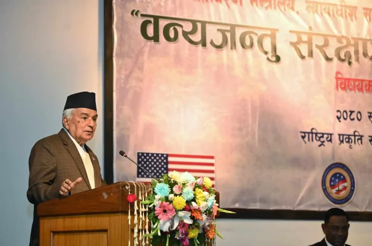 Patan, Feb 17: President Ramchandra Paudel has said nature conservation has become the issue of common concern and challenges to human beings. President Paudel shared this while addressing the 'Wildlife Conservation and Environmental Justice' conference jointly organised by the Ministry of Forest and Environment, Judges' Society Nepal and National Trust